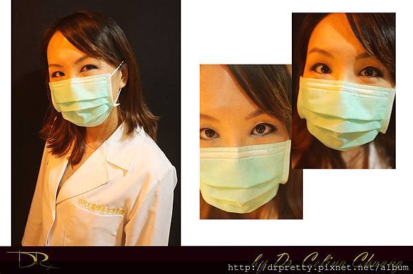 來一張搞怪的看診戴口罩的照片。